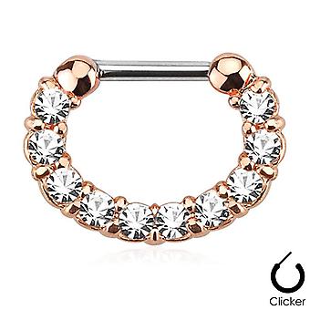 Ion plated rose gold 16ga septum clicker with cz gems