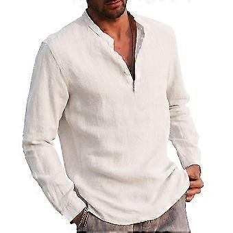 الرجال بلا ياقة طويلة الأكمام تي شيرت غرانداد قميص زر بلوفر قمم
