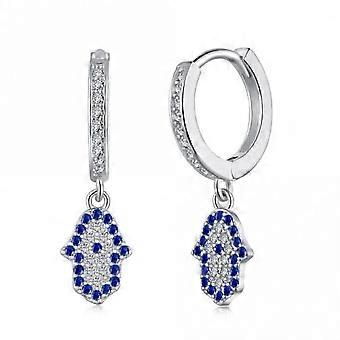 Sterling Silver Rhodium Plated Hand Of Fatima Hoop Earrings ERLE084