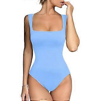 المرأة سلس bodysuit مربع الرقبة بلا أكمام مدبب الكتف الأشرطة دبابات قمم الصيف