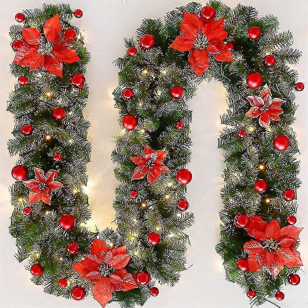 Christmas Garland, 270cm Christmas Decoration Wreaths With Led Lights, Artificial Tree Garland, Indoor And Outdoor Holiday Decorations, Gardensred