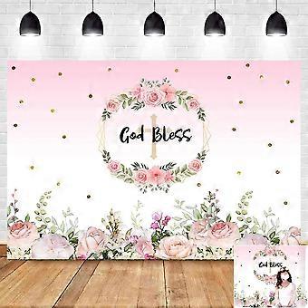 God Bless Baptism Backdrop Pink Baby Girls Baptism Sparkle Bokeh Photography Backdrops First Holy Communion Photo Background Pink Floral Baby Christen
