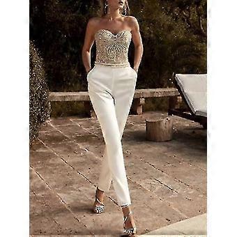 Stretchy White Jumpsuit for Women - Sexy Halter Neck Party Outfit