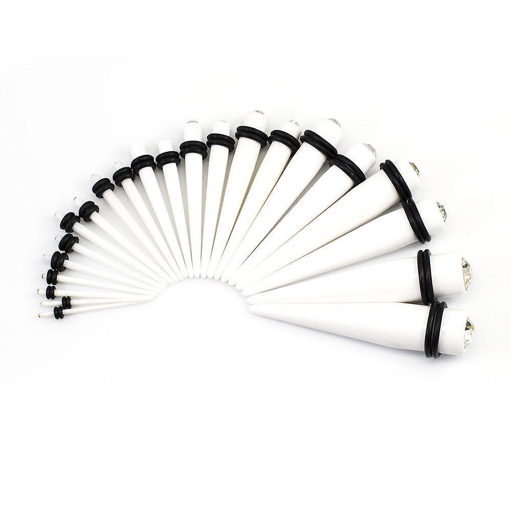 Stretching tapers kit white acrylic with cubic zirconia from 16g - 7/16 inch