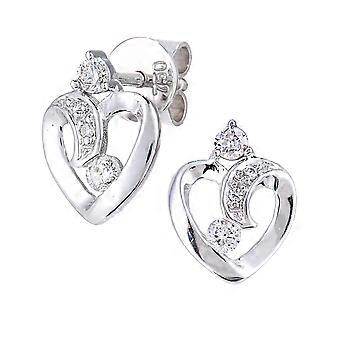 Jewelco London 18ct White Gold Round 15pts Diamond Heart Stud Earrings