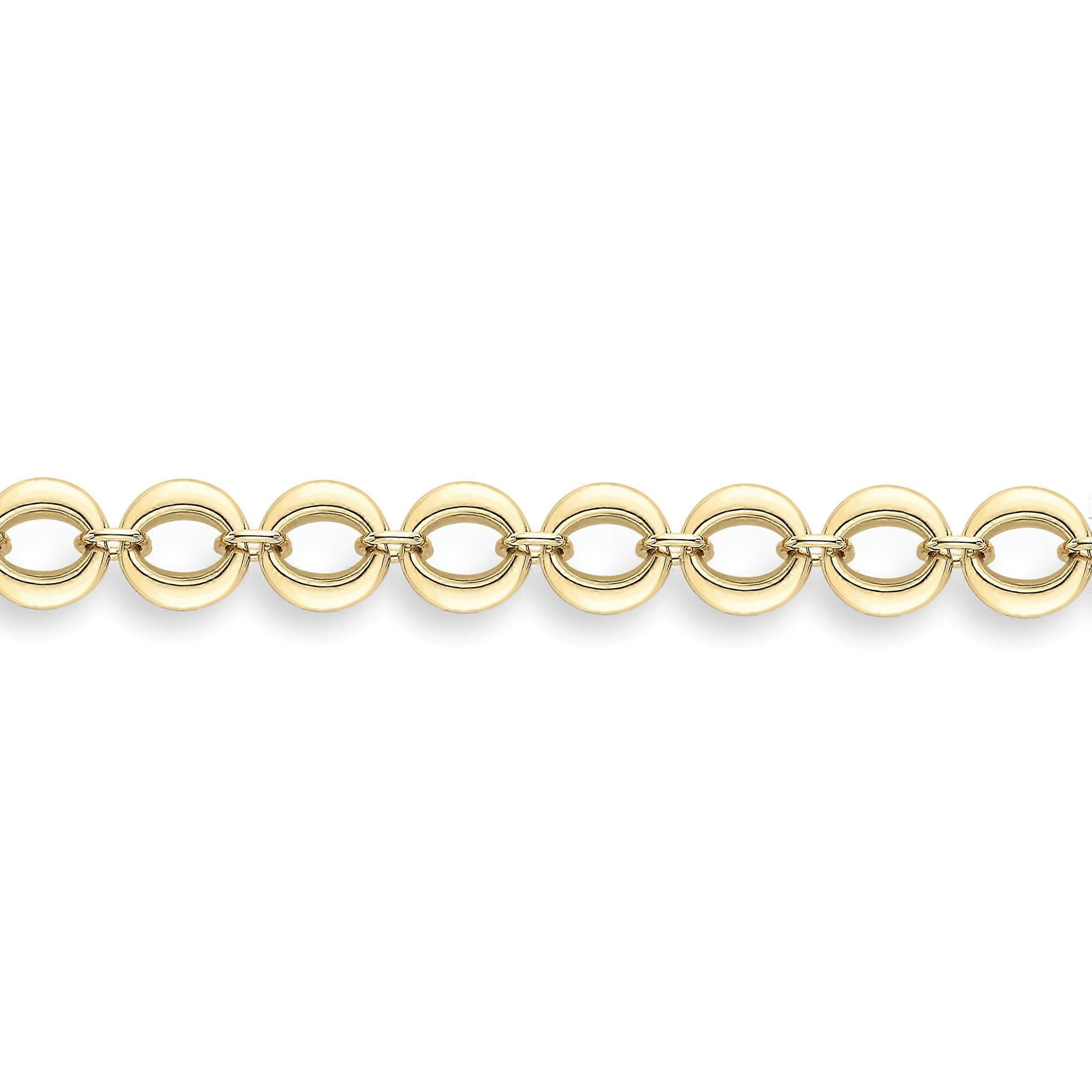 Jewelco London Ladies 9ct Yellow Gold Oval Eyelet Flat Domed Round Link Chain Bracelet 8mm 7.5"/19cm