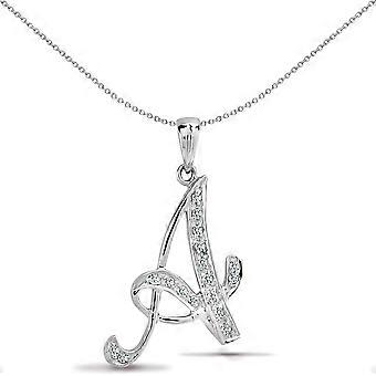 Jewelco London Ladies 9ct White Gold Pave Set Round G SI 0.1ct Diamond Identity Script Initial ID Charm Pendant Letter A