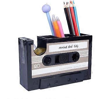 Creative Tape Pen Holder, Retro Cassette Tape Dispenser, Stationery Desk Tidy Container, Office Stationery Storage Container (Grey)