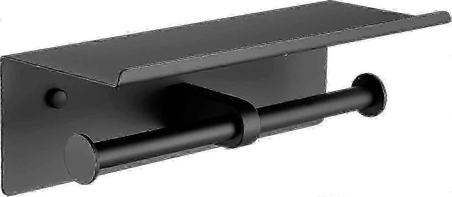 Black Toilet Paper Holder For 2 Rolls With Double Shelf Stainless Steel Wall Mounted Roll Holder