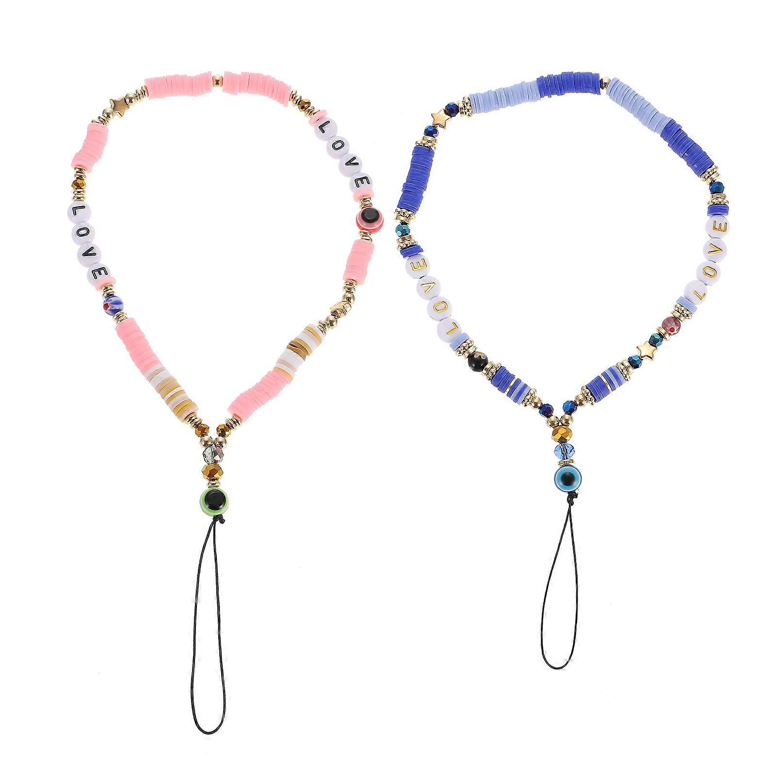 Decorative Phone Lanyard Colorful Beading Mobile Phone Accessories 2Pcs