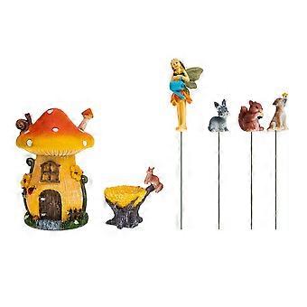 Garden Pot Decoration Resin Ornaments Stakes Miniature Mushroom House Animal Shapes Yard Ornament for Gardening Enthusiasts 13x8cm 1 Set
