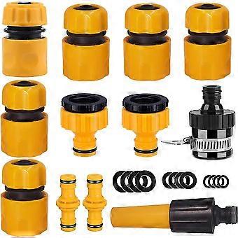 Hose Connector Set Of Garden Hose Fittings. Nozzle, Quick Connector, Waterproof Connector, Double Male Connectors, Tap Connectors Size 1/2 And 3/4 Inc