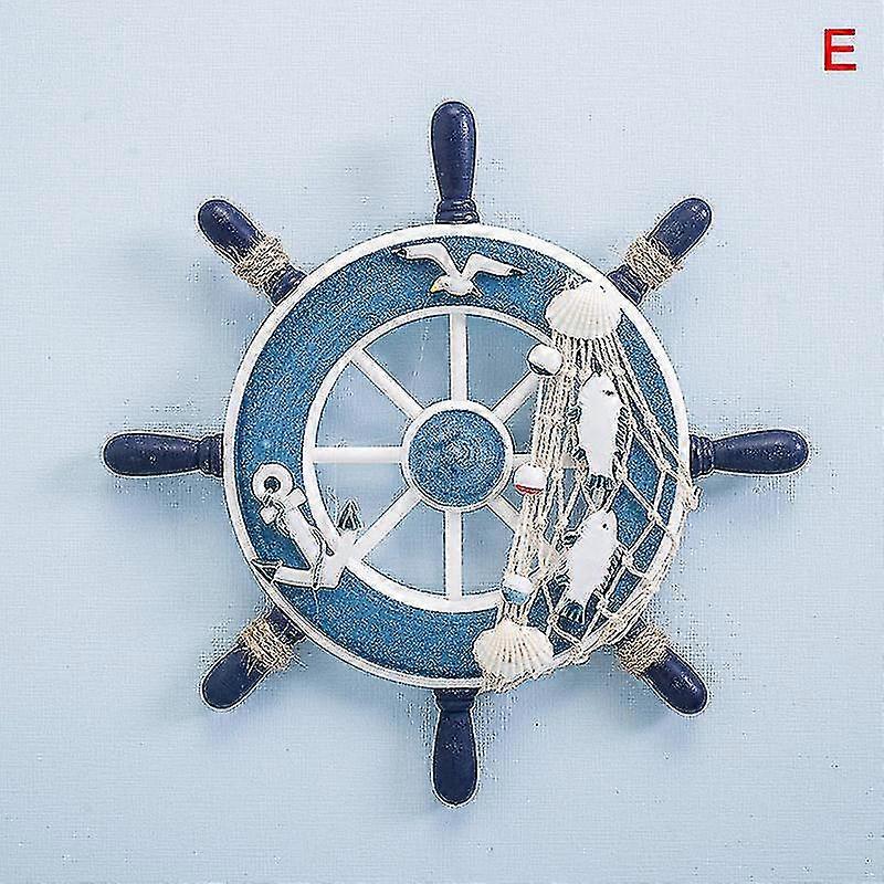Wooden Nautical Steering Wheel Beach Yacht Boat Ship Fishing Net