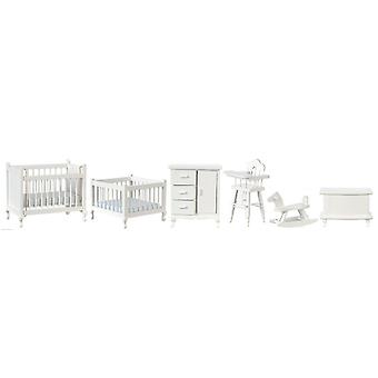 دمى البيت الأبيض أثاث الحضانة تعيين مصغرة 6 قطعة غرفة الطفل 1:12 مقياس