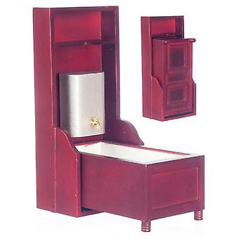 دمى البيت الفيكتوري ميرفي حمام حوض مصغرة خشب الماهوجني الخشب أثاث الحمام