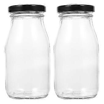 Reusable Glass Milk Bottles for Storage 2Pcs with Screw Cap Transparent Design