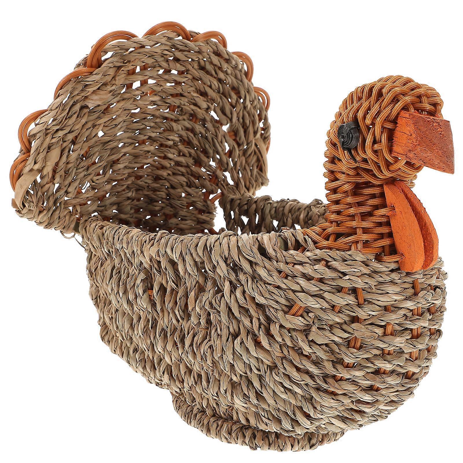 Woven Storage Basket Portable Sundries Basket Multifunctional Organizer Creative Storage Container for Home (Straw Turkey Pattern, Light Grey)