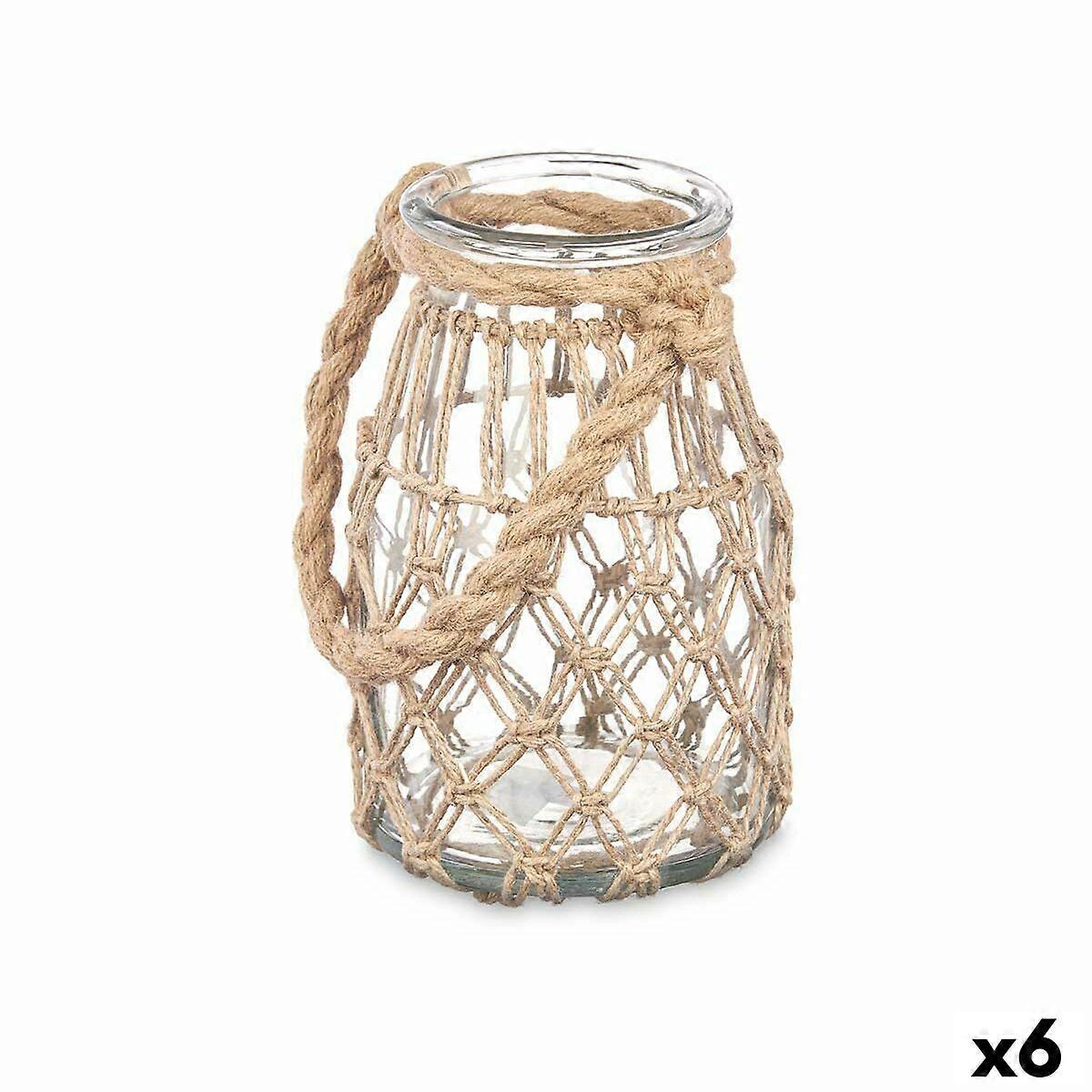 Candleholder Tin Transparent Natural Glass Rope 14 x 21 cm (6 Units)