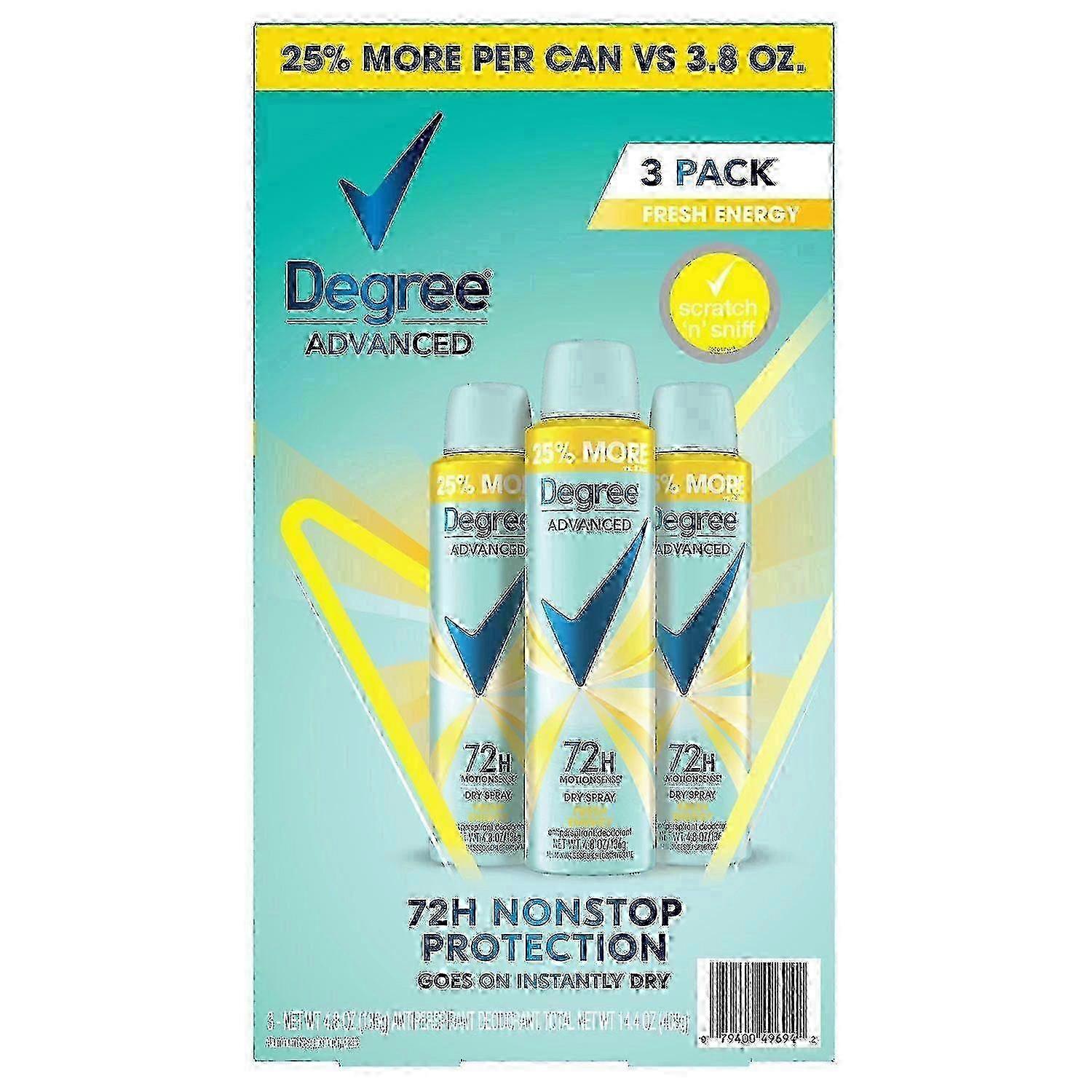 Degree Advanced Dry Spray Antiperspirant & Deodorant Pack, Fresh Energy, 3 Ea