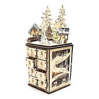 Christmas Wooden Advent Calendar Countdown Decoration 24 Drawers with LED Light