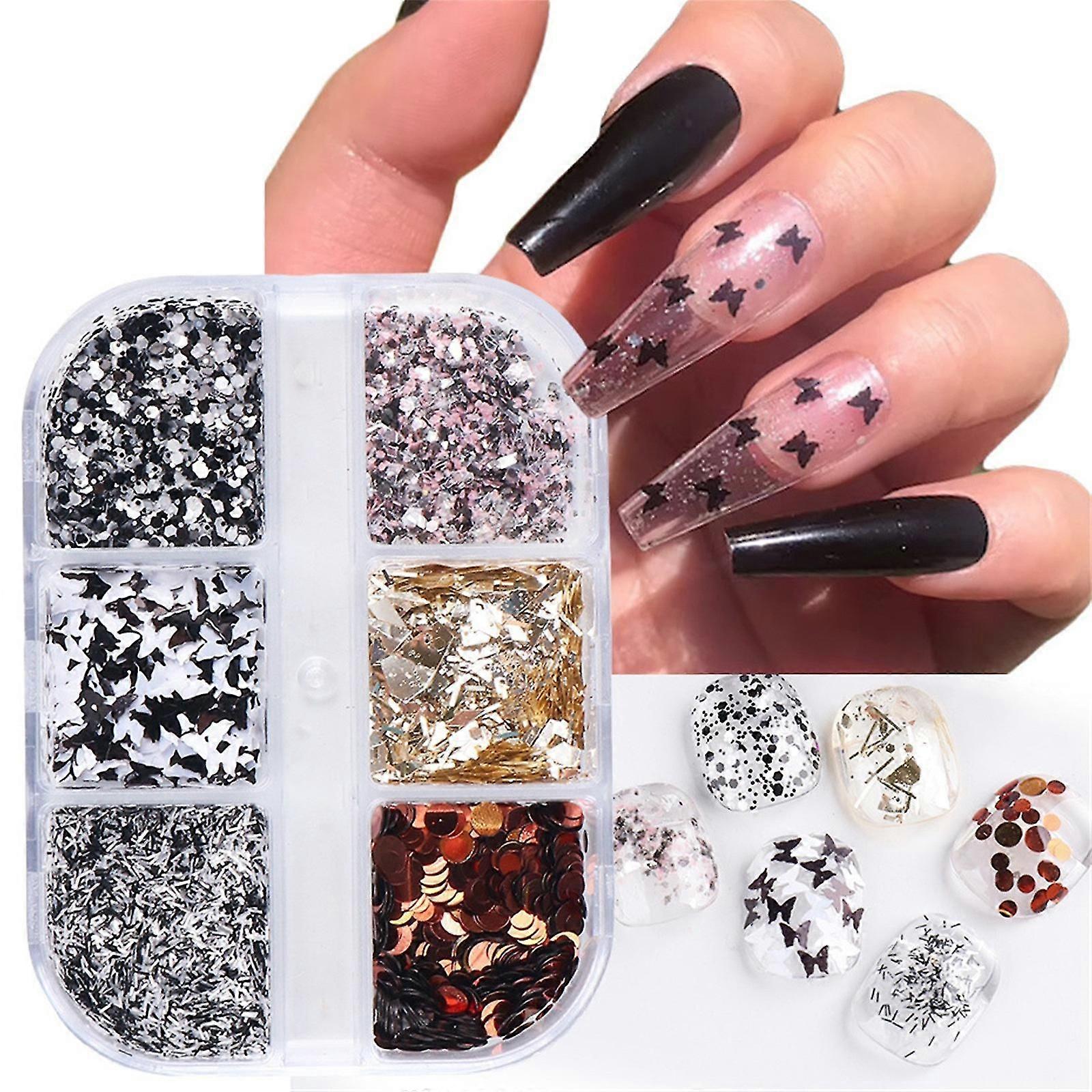 Irregular Sequin Gold Line Silver Powder 6 Grid Set