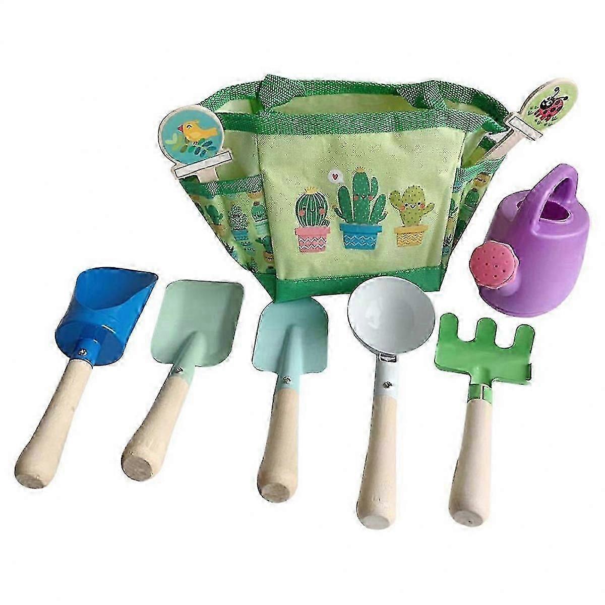 Children's Garden Tool Set Kids Outdoor Equipment Green Wood Stainless Steel Canvas Educational 1 Set