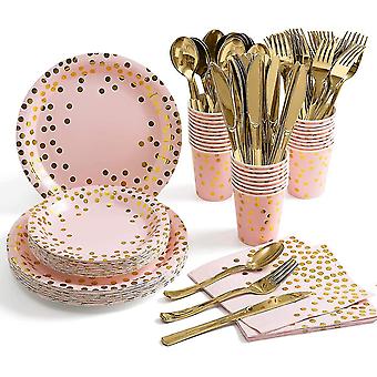 Pink And Gold Party Supplies Disposable Dinnerware Set Serves 25 Gold Dots On Pink Paper Plates Cups And Napkins, Gold Plastic Knives Spoons Forks Fo