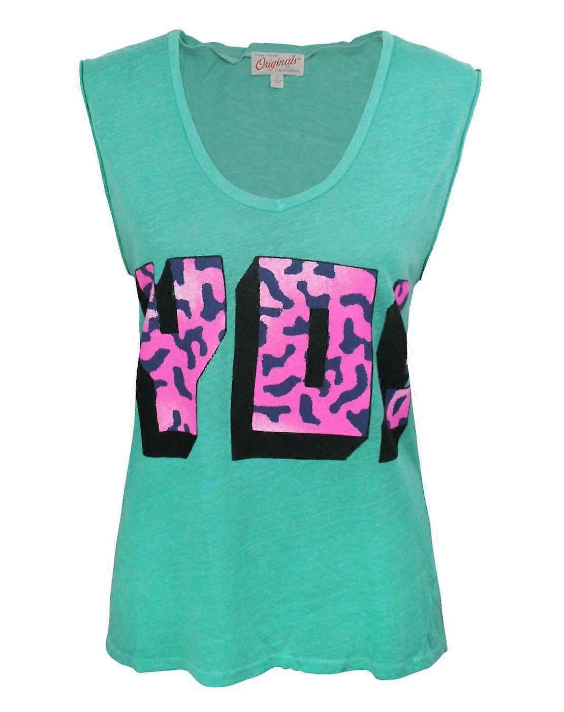 Junk Food Clothing Womens Vest Green Leopard Print Text