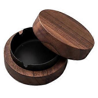 منفضة سجائر من خشب الجوز مع أغطية منفضة سجائر خشبية صامدة للرياح حامل رماد محمول للمدخنين مكتب سطح المكتب ، هدية رجالية (أسود) js