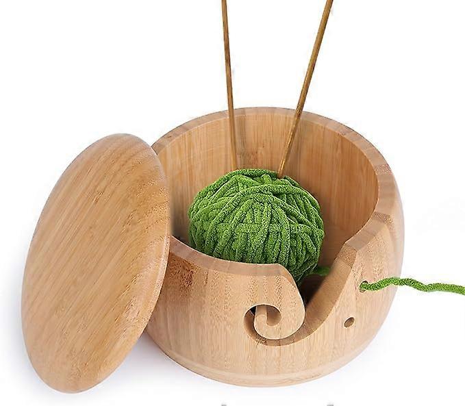 Large Yarn Bowl, Wooden Yarn Bowl with Removable Lid, Hand Knitting Wool Stand, Yarn Storage Bowl, Knitting Accessories (Round, Wooden)