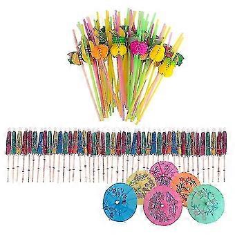 100 Pcs Fruit Straws Umbrella Straws Party Disposable Straws Table Decor Tropical Drinks For Cocktail Soft Drinks Hawaiian