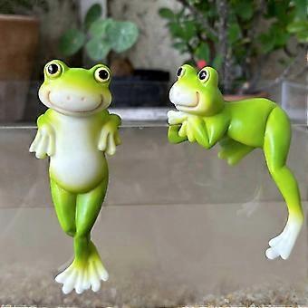 2 Packs Flower Pot Hangers Frog Decorative Figures Frog Decorative Frog Animals Resin Statue Garden Decoration, Green Frog Flower Pot Hanger Figures B