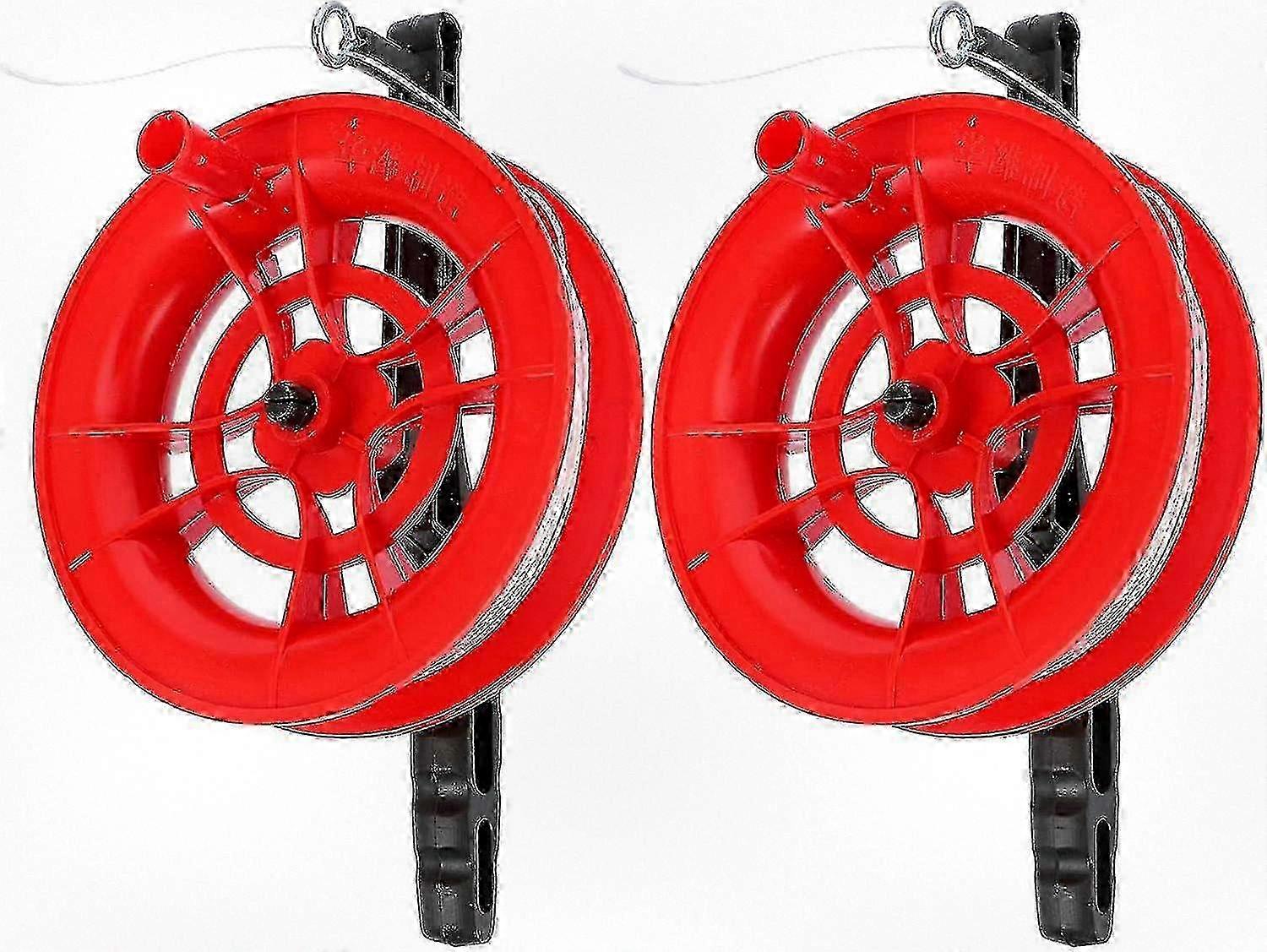 2-Piece 12cm Kite String Winder Reel with Handle and 100m Line for Outdoor Flying, Red Accessory