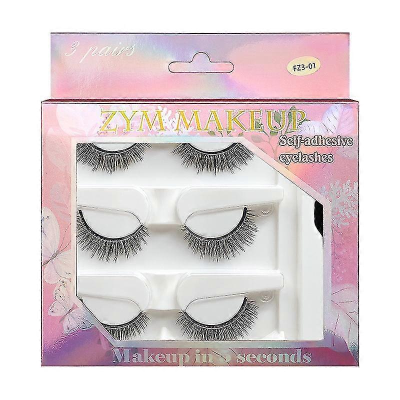 3 Pairs-reusable Self-adhesive False Eyelashes With Tweezer Waterproof Adhesive Tape Eye Lashes To Wear No Glue Needed Natural