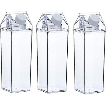 3 Pack Milk Carton Water Bottle Clear Square Milk Bottles Plastic Leak Proof Cup