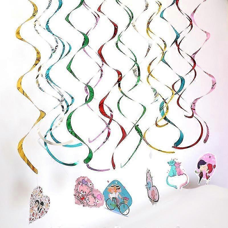 30 Pcs Mixed Color Hanging Swirl Decorations, Shiny Plastic Streamers, Ceiling Decorations Kids Birt