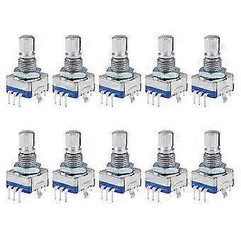 360 Degree Rotary Encoder Code Switch Digital Potentiometer EC11 5 Pins 15mm Shaft 10Pcs--silver blue
