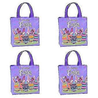 4Pcs Easter Handbag Portable Handle Colorful Egg Bunny Non-woven Fabric Treat Tote Pouch Shopper Gift Bag Happy Easter Festival Gift