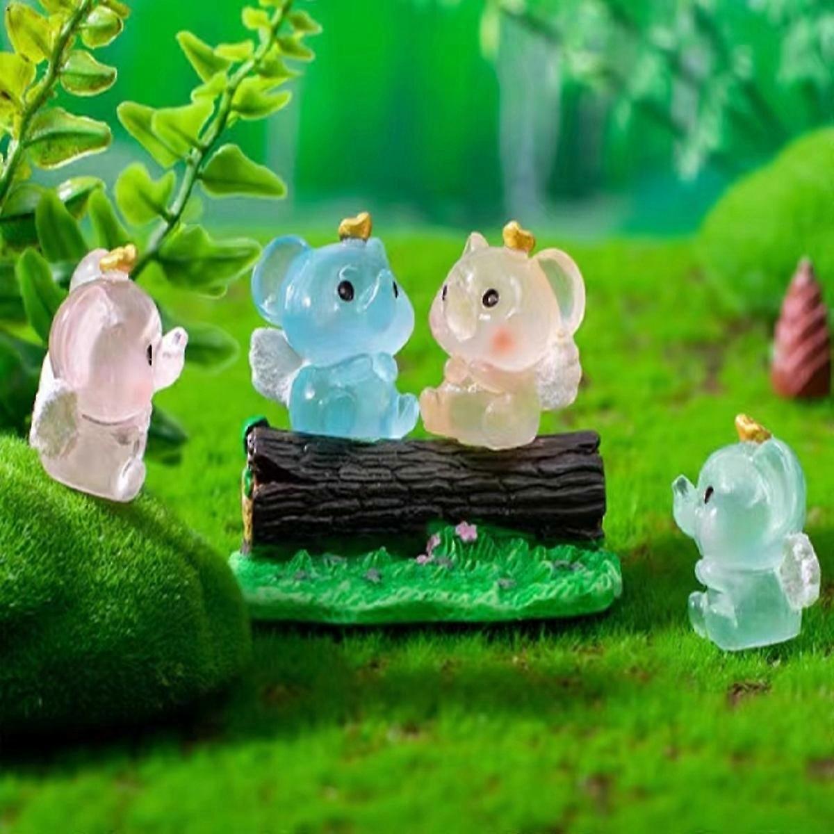 4pcs luminous crown dumbo set luminous baby elephant suitable for micro-landscape landscaping Doll house decoration accessories DIY cartoon cute crown