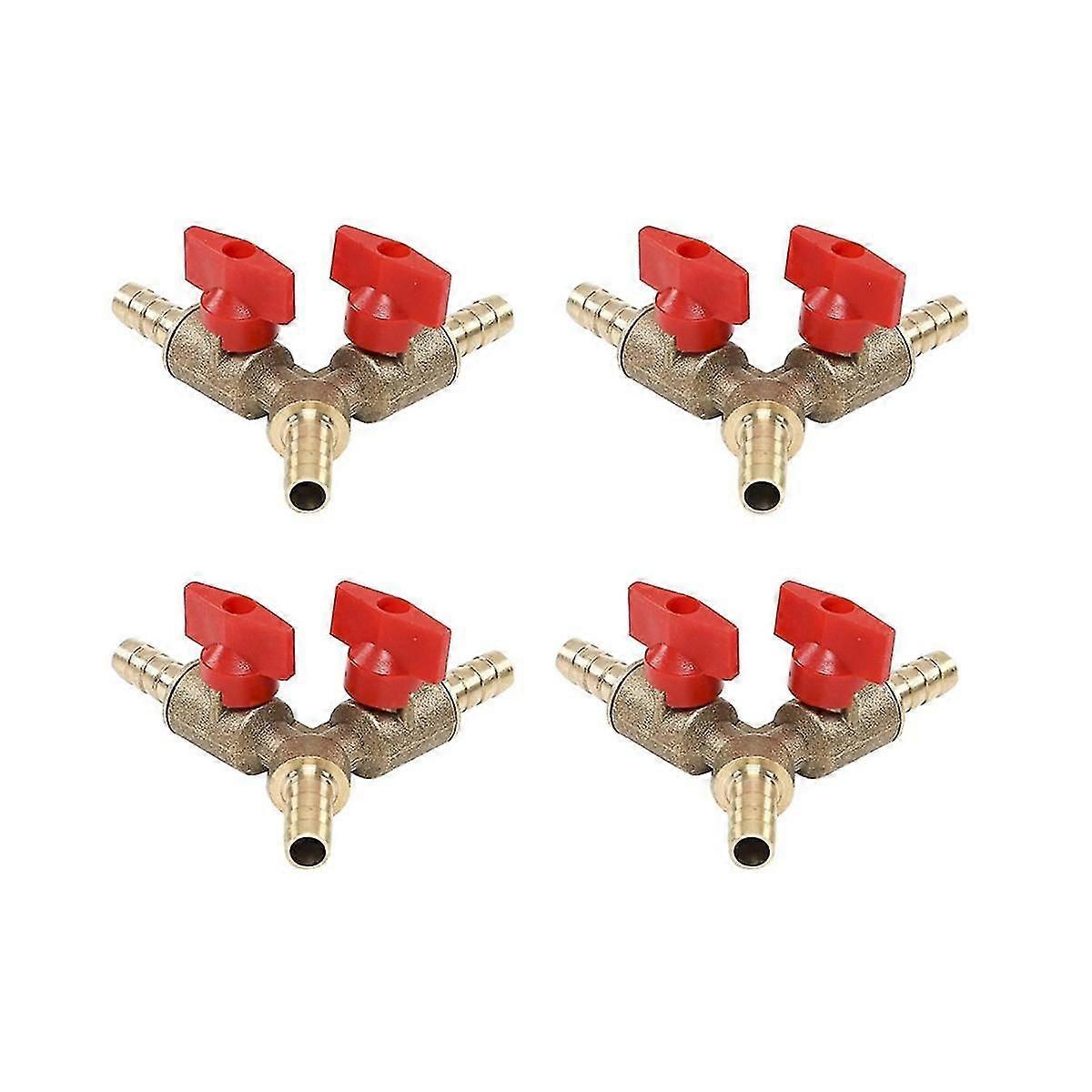 4pcs 3 Way Shut Off Ball Valve / Valve Clamp Fitting Hose Barb Fuel Gas 10mm Brass Y Type Ball Valve For Garden Tool
