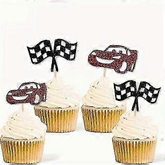 6pcs, Racing Car, Flag Cupcake Small Swabs Red Glitter Racing Car Black Glitter Flag Racing Car Theme Birthday Party Cake Decoration Supplies Birthday