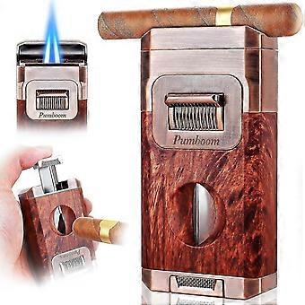 All-in-One Torch Cigar Lighter with Built-in Cutter, Holder & Dual Windproof Jet Flame - Gift Box Included