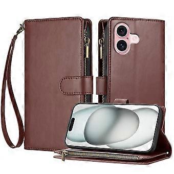 Compatible With Iphone 16 Plus Wallet Case,Buckle Flip PU Leather Shockproof Protective Phone Cover-Brown