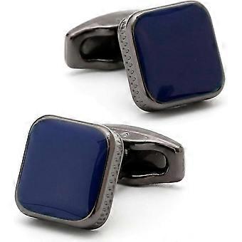 Classic Square Black/Blue Cufflinks for Men In Gift Case Handmade Silver/Black Tone Metal Men's Cufflinks Jewelry Set for Wedding Party Anniversary Bu
