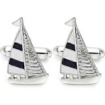Navy Blue Sail Boat Cufflinks Classic Fashion Modern Stripe Cufflinks Blue and Silver