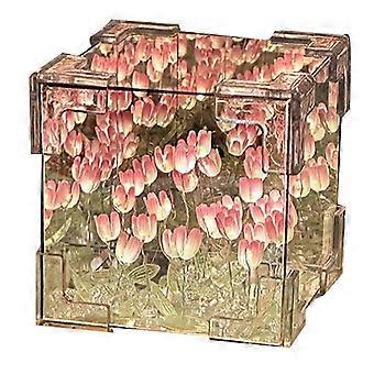 DIY Tulip Mirror Cube Lamp Simulation Flower Bedroom Sleeping Table Handmade Tulip Small Night Light Gift PINK