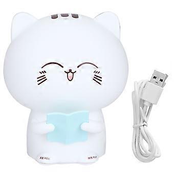 Household Mini Kitten-Shape Silicone LED Reading Light Record Night Light with Touch SensorBlue