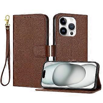 Iphone 16 Pro Wallet Case With RFID Blocking Card Slots-Brown
