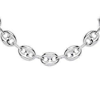 Jewelco London Ladies Rhodium Plated Sterling Silver Chunky Coffee Bean Marine Chain Necklace 9mm 16 + 2 inch
