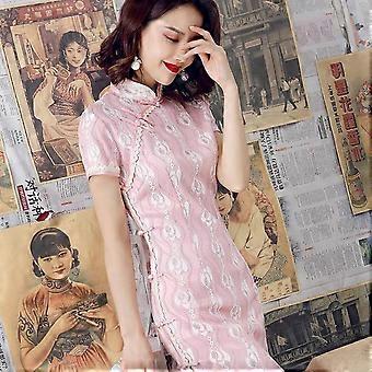 JWL-مثير بورجوندي جديد أنثى الدانتيل Cheongsam المرأة الجدة Qipao قصيرة الأكمام أنيقة اللباس الصيني سليم تشي باو Vestidos حجم S-XXL